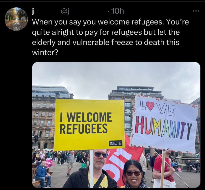 • we would not welcome a refugee into our home πŸ˜‚