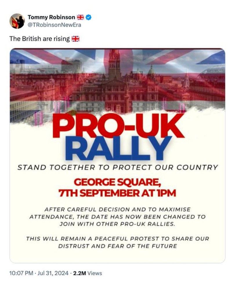 The counter-protest was called out of solidarity, and a reasonable concern that the Pro-UK Rally might be well attended, and could turn violently racist, as we saw during the anti-immigrant riots in England last month.